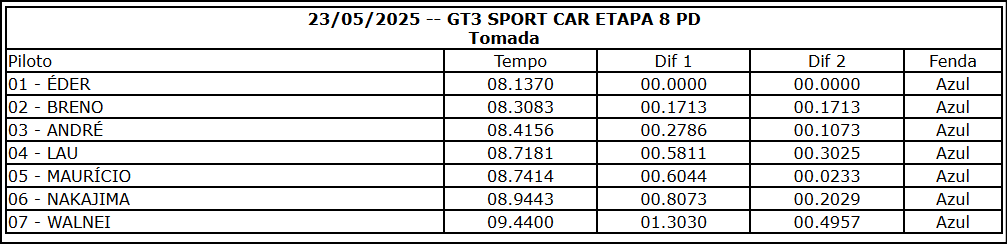 Resultado 8ª Etapa