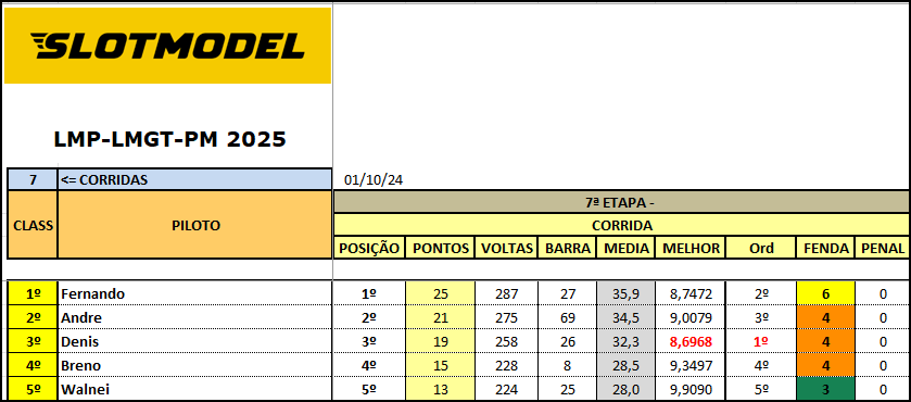 Resultado 7ª Etapa - Noturna