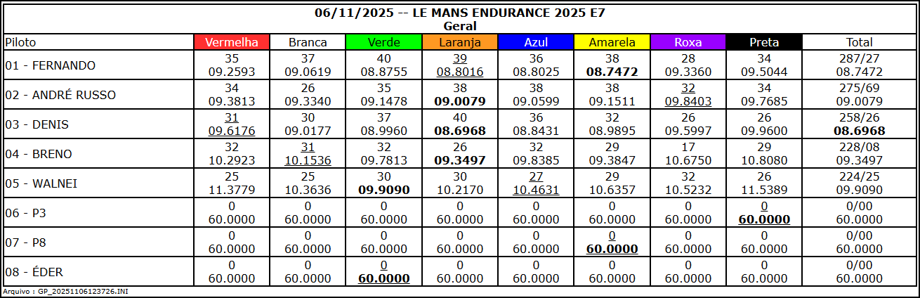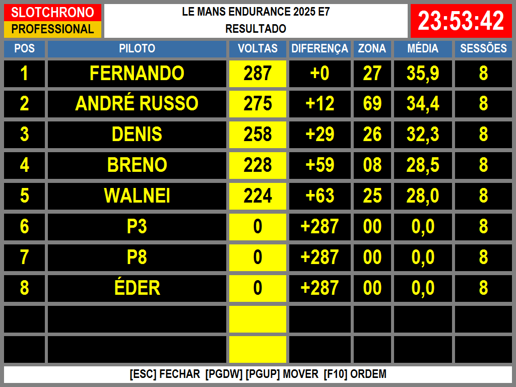 Resultado Corrida