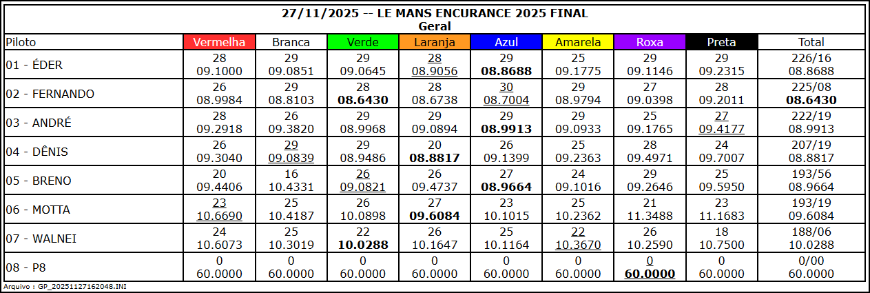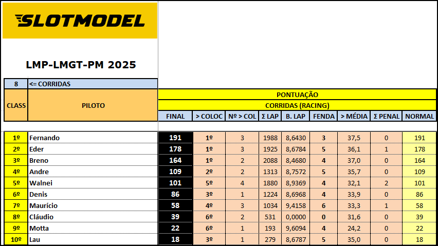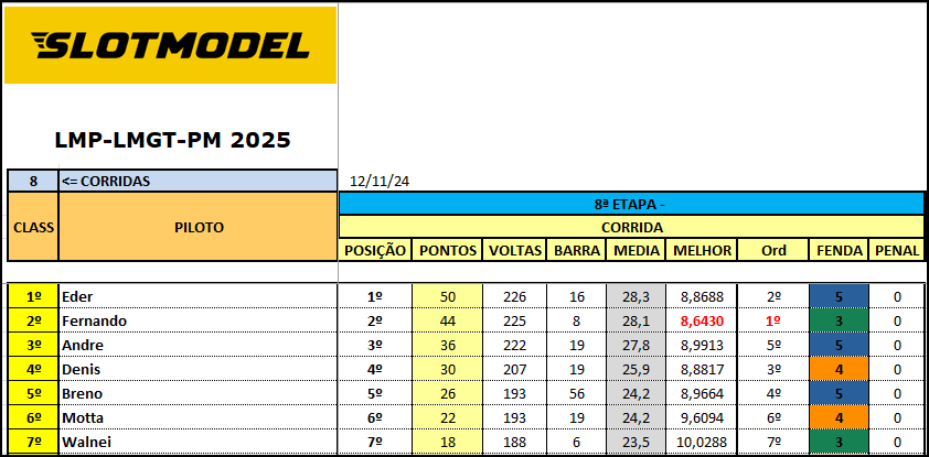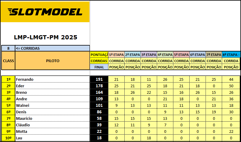 Resultado 8ª Etapa - Noturna