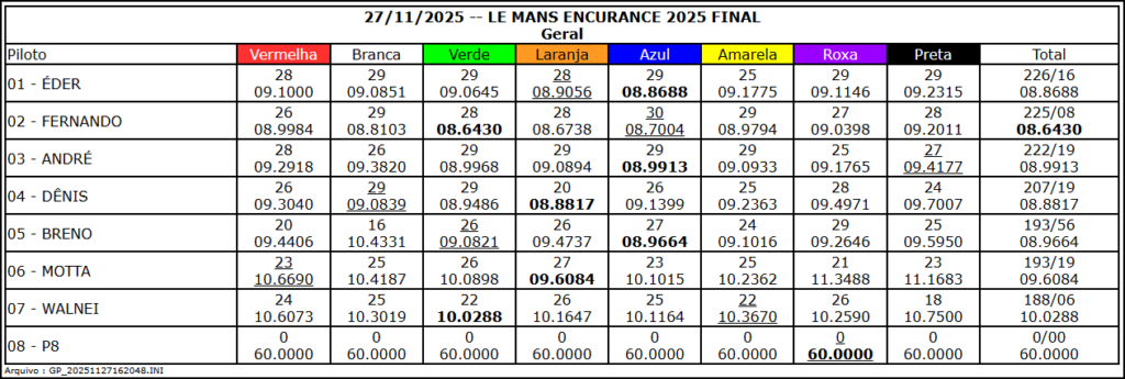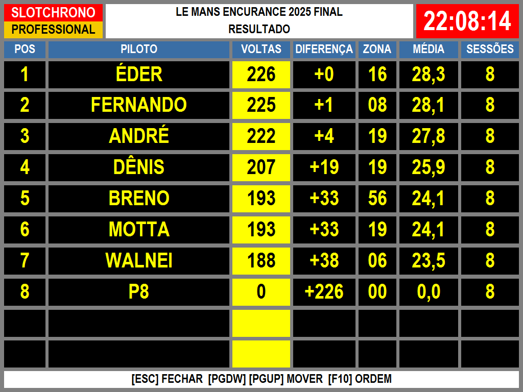 Resultado Corrida