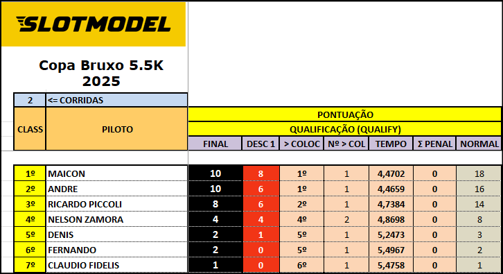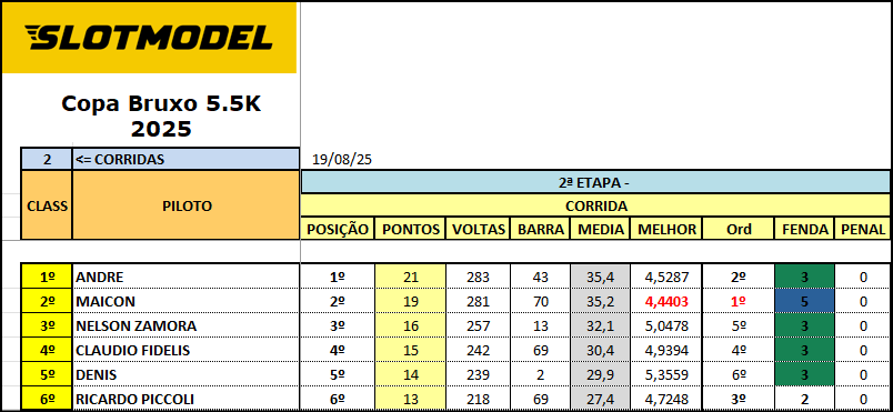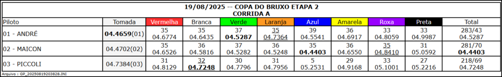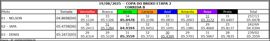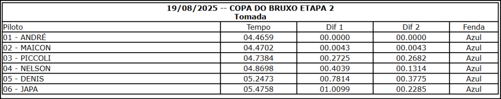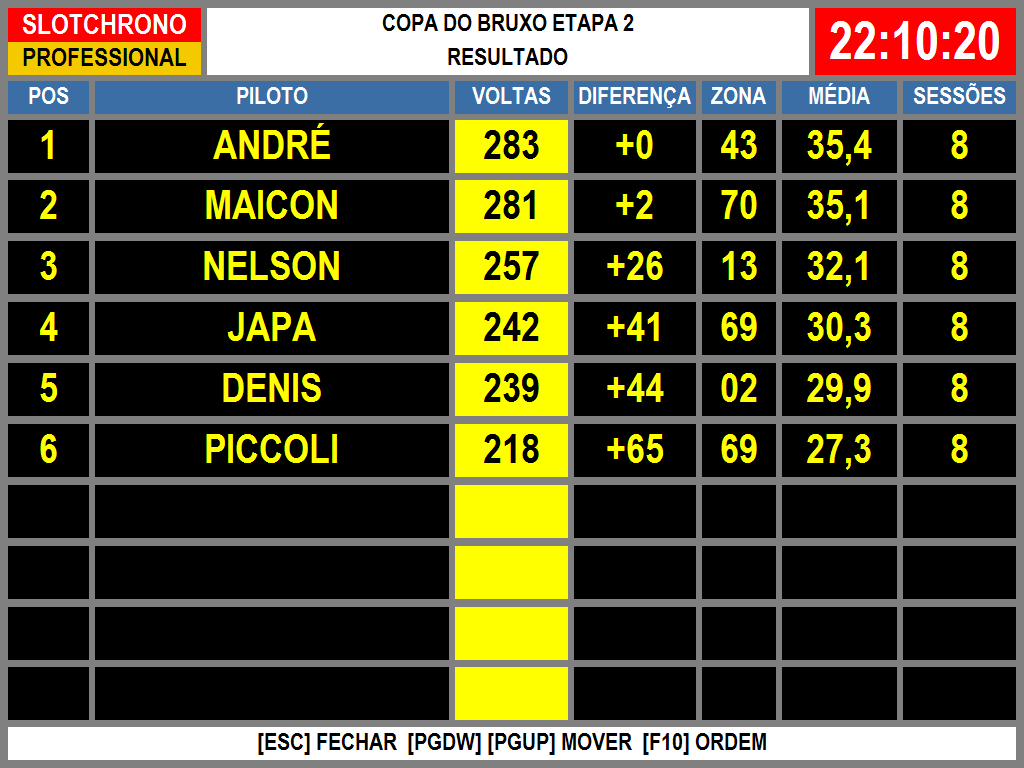 Resultado Corrida