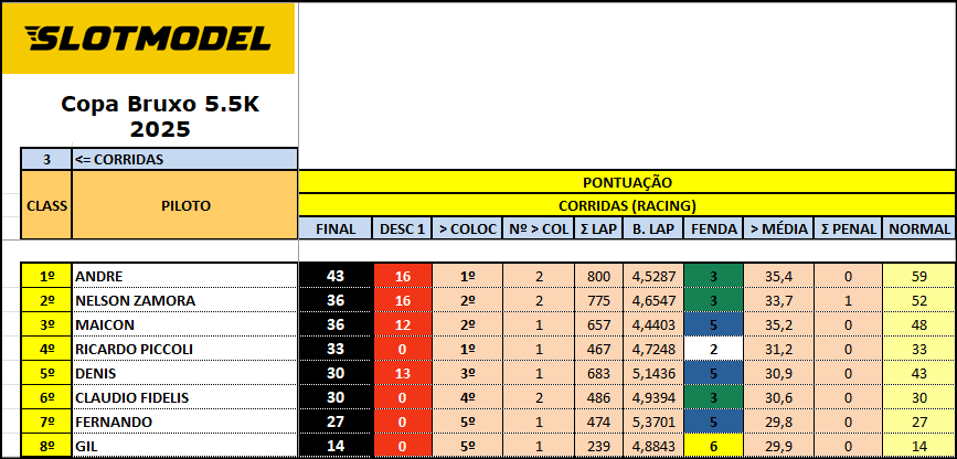 Resultado Corrida