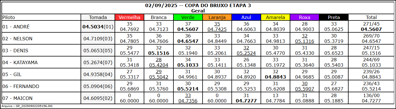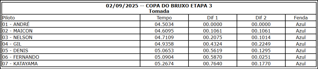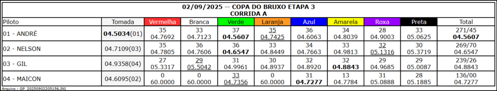 Resultado Corrida A
