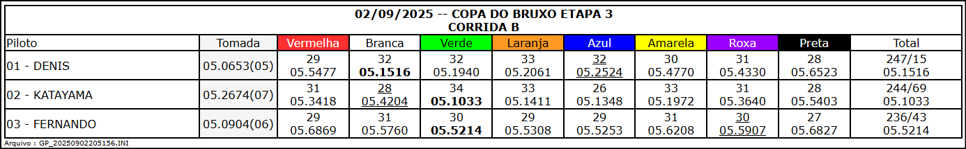 Resultado Corrida B