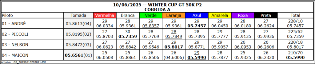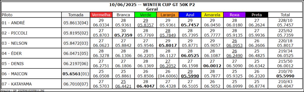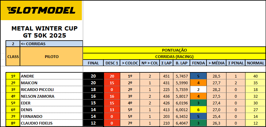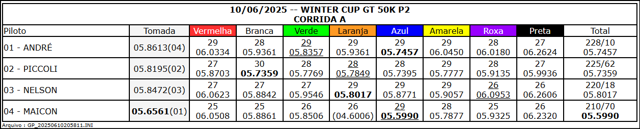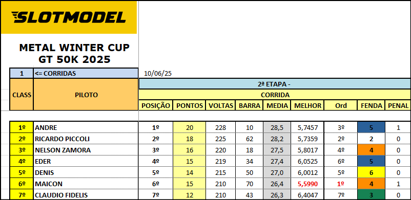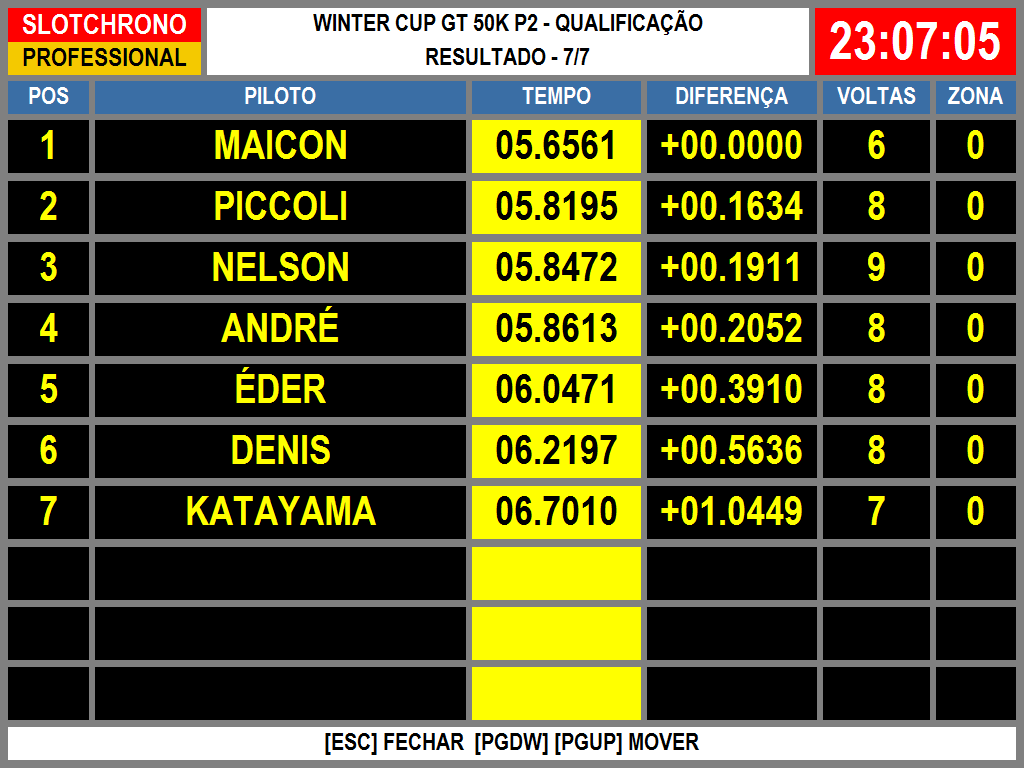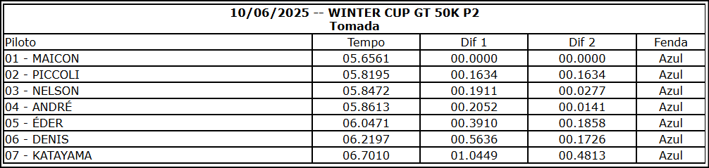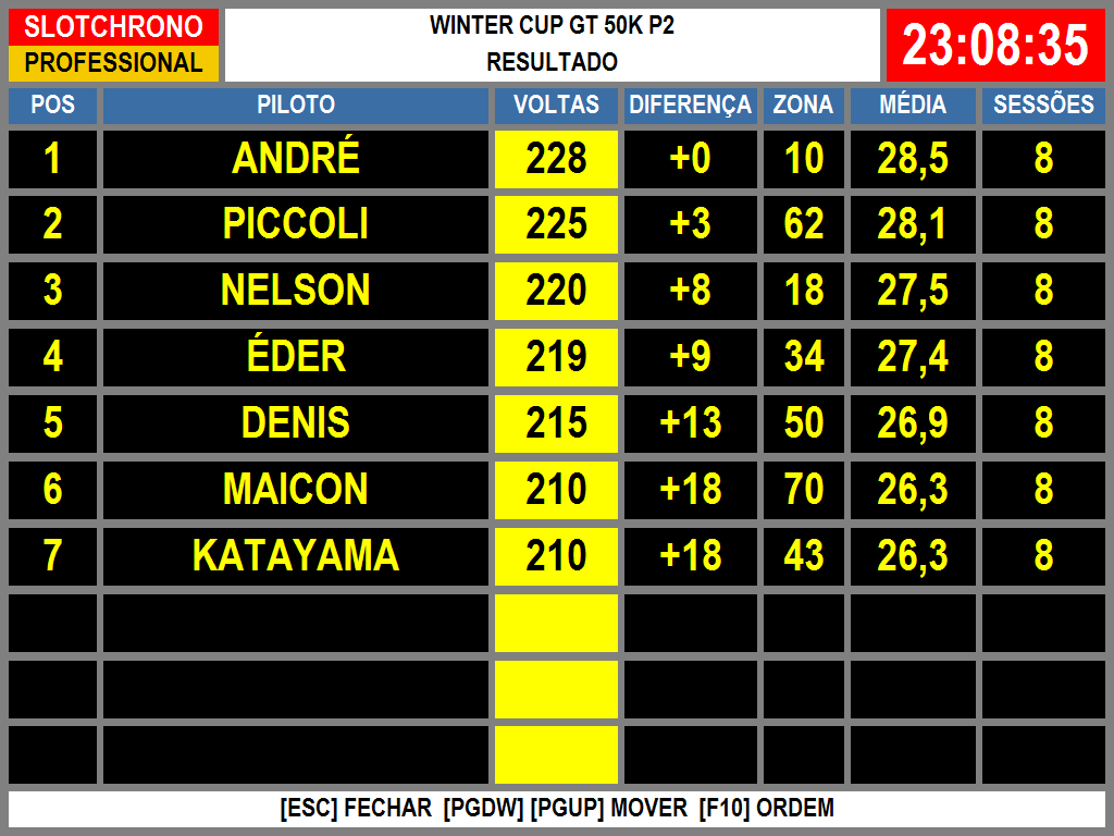 Resultado Corrida